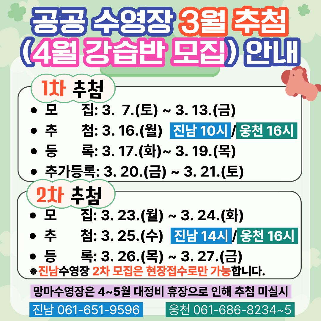 - 망마국민체육센터 접영 2026년 03월 강습 추첨 결과안내 2026-02-13